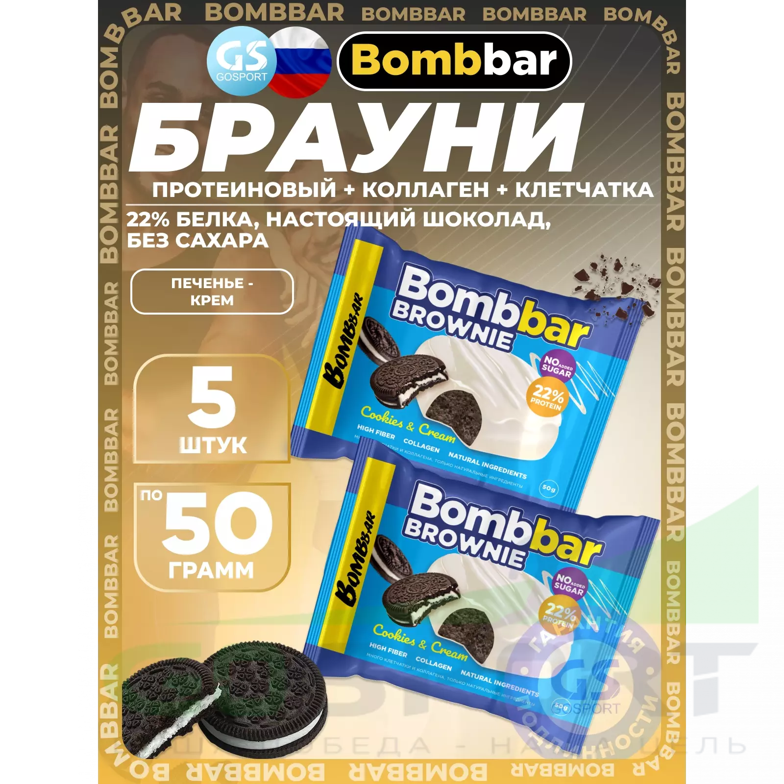 BombBar Печенье глазированное Brownie 5 x 50 г, Печенье-крем — Полезный перекус и поддержка мышц