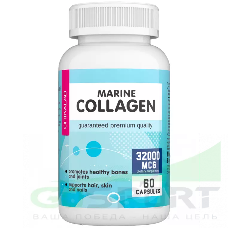 Chikalab Marine collagen 32 mg 60 капсул — Укрепление костей и суставов, поддержка волос, кожи и ногтей