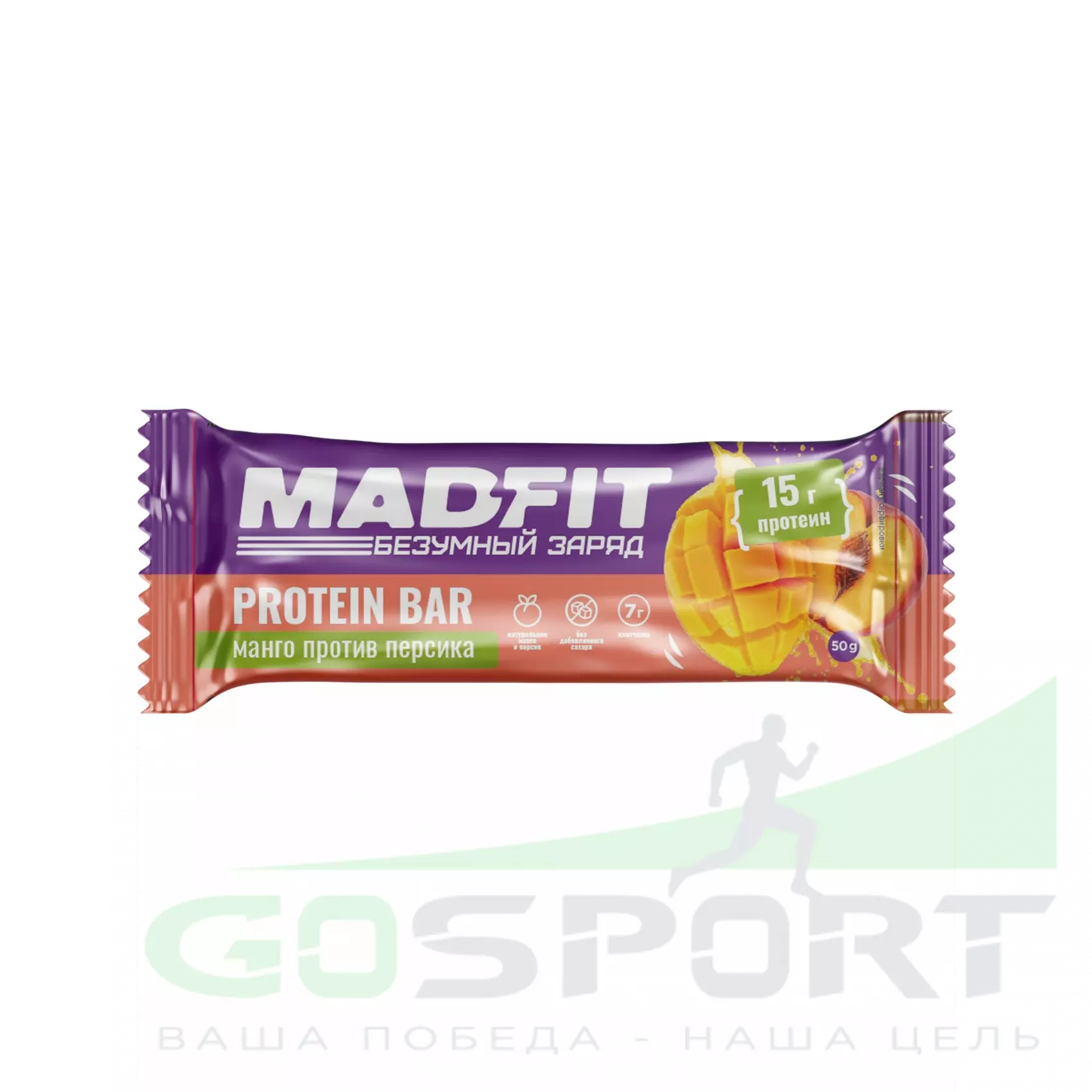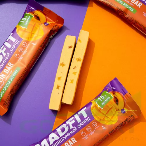 Madfit Батончик неглазированный Protein bar 50 г, Манго против персика — Энергия, здоровый перекус, поддержка мышц