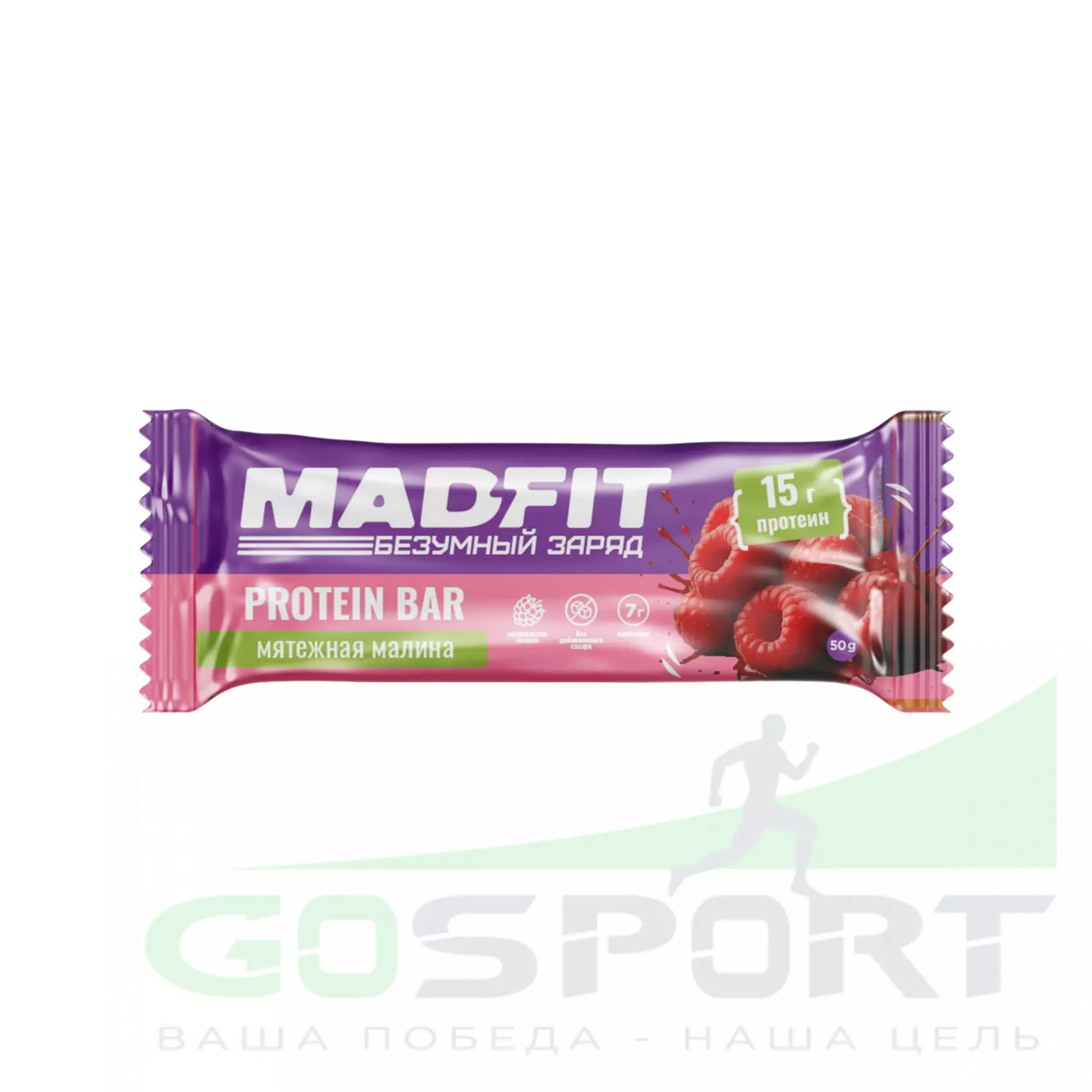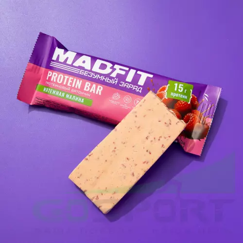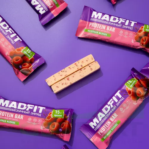 Madfit Батончик неглазированный Protein bar 50 г, Мятежная малина — Энергия, здоровый перекус, поддержка мышц
