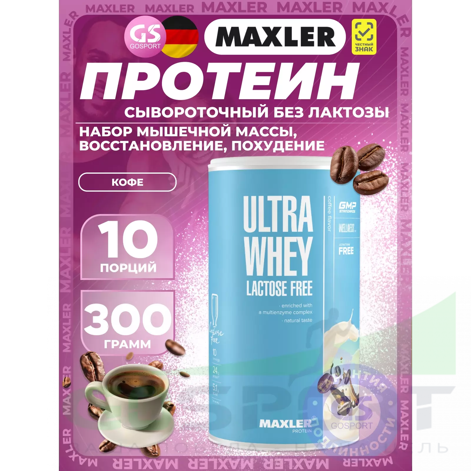 MAXLER Ultra Whey Lactose Free 300 г, Кофе — Отсутствие лактозы, Минимальное количество жиров и сахаров