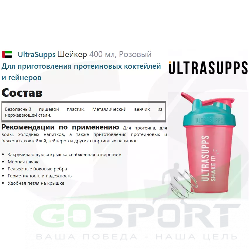 Шейкер спортивный линейки ULTRASUPPS – это компактный и прочный стакан из высококачественного пластика для лучшего смешивания ваших любимых напитков.