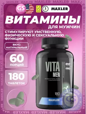 -10% 3 410 q 3 789 q 3 789 q 000 Витамины для мужчин VitaMen (USA) 180 таблеток MAXLER (USA) В корзину Артикул 2705