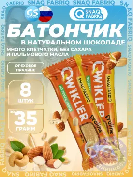 -24% 663 q 872 q 872 q 000 Протеиновый батончик QWIKLER (Квиклер) без сахара 8 x 35 г, Ореховое пралине SNAQ FABRIQ В корзину Артикул 57957