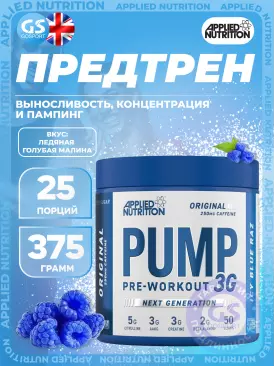 Предтреник Pump 3G Pre Workout 375 г, Ледяная голубая малина APPLIED NUTRITION Подписка на товар Артикул 52355