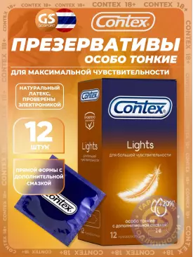 -20% 1 092 q 1 365 q 1 365 q 000 Презервативы Lights (особо тонкие) 12 шт Contex В корзину Артикул 57048