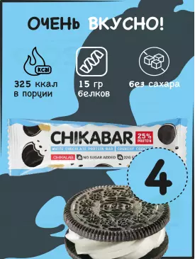 -22% 437 q 560 q 560 q 000 Протеиновый батончик Chikabar 4 батончика x 60 г, Печенье с кремом Chikalab В корзину Артикул 50998