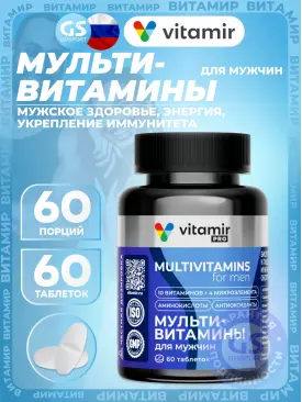 -22% 619 q 794 q 794 q 000 Витамины для мужчин Мультивитамины для мужчин 60 таблеток VITAMIR PRO В корзину Артикул 57502