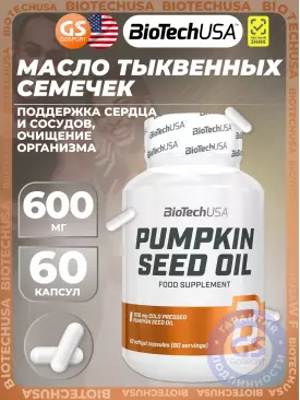 Комплексные антиоксиданты Pumpkin Seed Oil 600 mg 60 гелевых капсул BioTechUSA Подписка на товар Артикул 57259