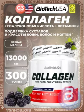Коллаген гидролизованный Collagen 13000 mg 300 г, Черная малина BioTechUSA Подписка на товар Артикул 57440