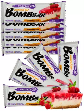 -10% 1 053 q 1 170 q 1 170 q 000 Протеиновый батончик Protein Bar 9 x 60 г, Малиновый чизкейк BombBar В корзину Артикул 50310