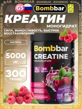 Креатин моногидрат Creatine monohydrate 5000 mg 300 г, Малина BombBar Подписка на товар Артикул 57525