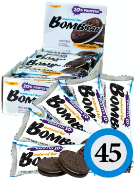 -10% 5 265 q 5 850 q 5 850 q 000 Протеиновый батончик Protein Bar 45 x 60 г, Печенье с кремом BombBar В корзину Артикул 51298