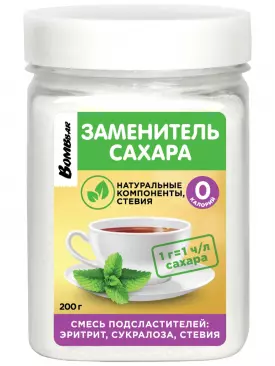 Заменитель питания Сахарозаменитель Эритрит, сукралоза, стевия 200 г BombBar Подписка на товар Артикул 51424