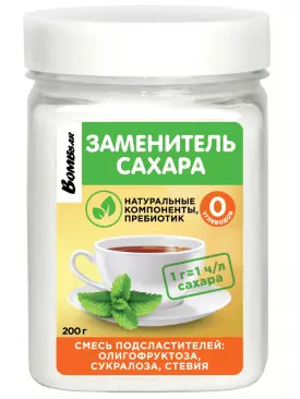 Заменитель питания Сахарозаменитель Олигофруктоза, сукралоза, стевия 200 г BombBar Подписка на товар Артикул 51425