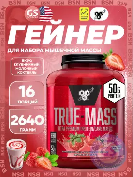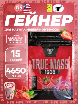 Гейнер True Mass 1200 Weight Gainer 4650 г, Клубничный молочный коктейль BSN Подписка на товар Артикул 3965