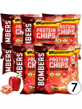 -20% 476 q 595 q 595 q 000 Чипсы Protein Chips 7 x 50 г, Бекон с паприкой BombBar В корзину Артикул 50673
