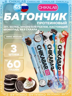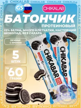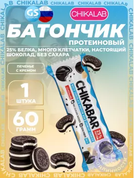 -10% 805 q 894 q 894 q 000 Протеиновый батончик Chikabar 6 x 60 г, Печенье с кремом Chikalab В корзину Артикул 51010