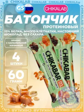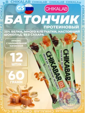 -10% 805 q 894 q 894 q 000 Протеиновый батончик Chikabar 6 x 60 г, Арахис с карамельной начинкой Chikalab В корзину Артикул 51008