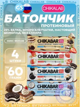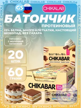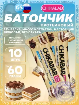 -10% 805 q 894 q 894 q 000 Протеиновый батончик Chikabar 6 x 60 г, Тирамису с молочной начинкой Chikalab В корзину Артикул 51009