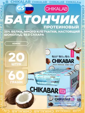 -10% 805 q 894 q 894 q 000 Протеиновый батончик Chikabar 6 x 60 г, Кокос Chikalab В корзину Артикул 51011