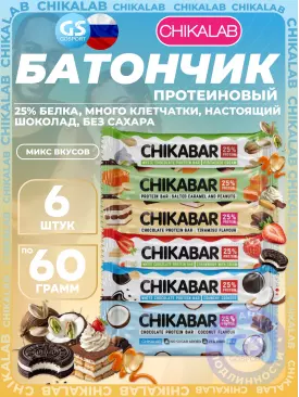 900 q 900 q 000 Протеиновый батончик Батончик глазированный Chika nuga 6 x 50 г, Микс Chikalab В корзину Артикул 54674