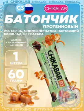 149 q 149 q 000 Протеиновый батончик Chikabar 60 г, Арахис с карамельной начинкой Chikalab В корзину Артикул 23199