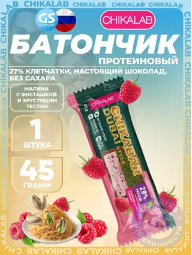 129 q 129 q 000 Протеиновый батончик Батончик глазированный Chikabar Dubai 45 г, Малина с фисташкой и хрустящим тестом Chikalab В корзину Артикул 57575