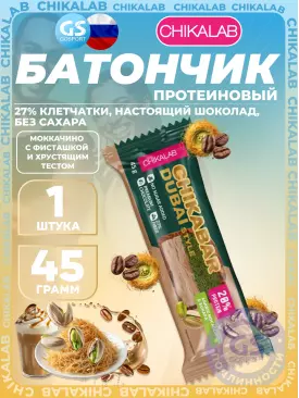 129 q 129 q 000 Протеиновый батончик Батончик глазированный Chikabar Dubai 45 г, Моккачино с фисташкой и хрустящим тестом Chikalab В корзину Артикул 57577