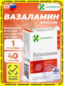 -12% Новинка 1 311 q 1 490 q 1 490 q 000 Пептиды Хавинсона Вазаламин 40 таблеток Цитамины В корзину Артикул 56151