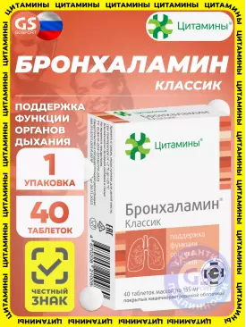 -12% Новинка 2 330 q 2 647 q 2 647 q 000 Пептиды Хавинсона Бронхаламин 40 таблеток Цитамины В корзину Артикул 56150