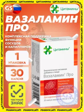 -12% Новинка 1 995 q 2 267 q 2 267 q 000 Пептиды Хавинсона Вазаламин Про 30 капсул Цитамины В корзину Артикул 56149