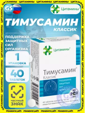 -20% Новинка 1 248 q 1 560 q 1 560 q 000 Пептиды Хавинсона Тимусамин 40 таблеток Цитамины В корзину Артикул 56157
