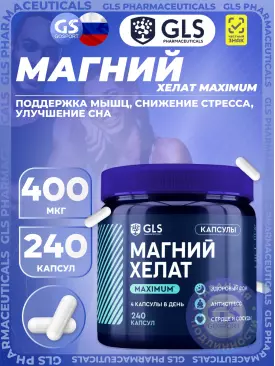 -20% 1 284 q 1 605 q 1 605 q 000 Магний Магний хелат maximum 400 мг 240 капсул GLS pharmaceuticals В корзину Артикул 57368