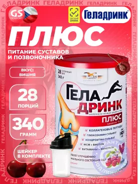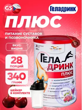 Комплекс хондропротекторов Плюс (Geladrink Plus) + Шейкер 340 г + шейкер, Вишня ГЕЛАДРИНК Подписка на товар Артикул 55159