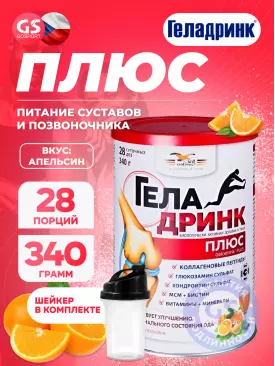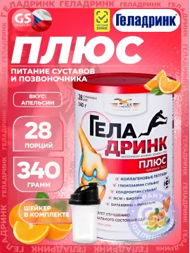 Комплекс хондропротекторов Плюс (Geladrink Plus) + Шейкер 340 г + шейкер, Апельсин ГЕЛАДРИНК Подписка на товар Артикул 55157