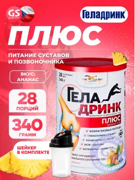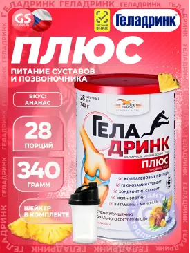 Комплекс хондропротекторов Плюс (Geladrink Plus) + Шейкер 340 г + шейкер, Ананас ГЕЛАДРИНК Подписка на товар Артикул 55158