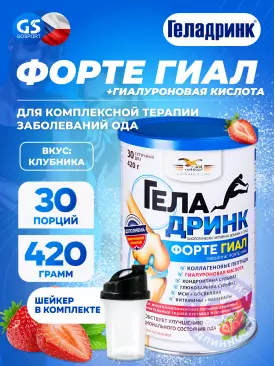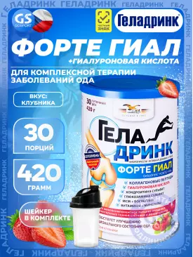 Комплекс хондропротекторов ФОРТЕ (Geladrink Forte) ГИАЛ + Шейкер 420 г + шейкер, Клубника ГЕЛАДРИНК Подписка на товар Артикул 55149