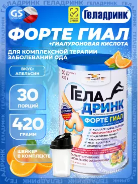 Комплекс хондропротекторов ФОРТЕ (Geladrink Forte) ГИАЛ + Шейкер 420 г + шейкер, Апельсин ГЕЛАДРИНК Подписка на товар Артикул 55148
