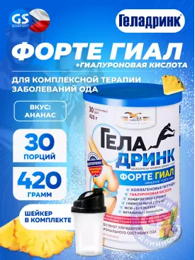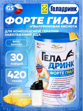 Комплекс хондропротекторов ФОРТЕ (Geladrink Forte) ГИАЛ + Шейкер 420 г + шейкер, Ананас ГЕЛАДРИНК Подписка на товар Артикул 55150