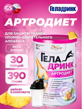Комплекс хондропротекторов Артродиет (Geladrink Artrodiet) + Шейкер 390 г + шейкер, Ананас ГЕЛАДРИНК Подписка на товар Артикул 55154