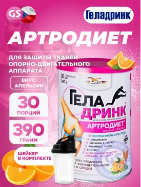 Комплекс хондропротекторов Артродиет (Geladrink Artrodiet) + Шейкер 390 г + шейкер, Апельсин ГЕЛАДРИНК Подписка на товар Артикул 55155