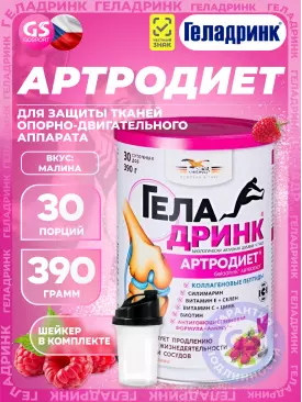Комплекс хондропротекторов Артродиет (Geladrink Artrodiet) + Шейкер 390 г + шейкер, Малина ГЕЛАДРИНК Подписка на товар Артикул 55156