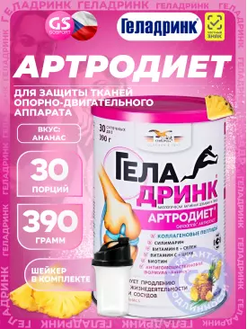 Комплекс хондропротекторов Артродиет (Geladrink Artrodiet) + Шейкер 390 г + шейкер, Ананас ГЕЛАДРИНК Подписка на товар Артикул 55154