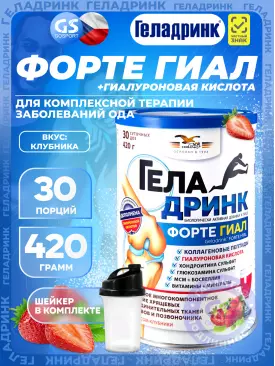 Комплекс хондропротекторов ФОРТЕ (Geladrink Forte) ГИАЛ + Шейкер 420 г + шейкер, Клубника ГЕЛАДРИНК Подписка на товар Артикул 55149