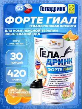 Комплекс хондропротекторов ФОРТЕ (Geladrink Forte) ГИАЛ + Шейкер 420 г + шейкер, Апельсин ГЕЛАДРИНК Подписка на товар Артикул 55148