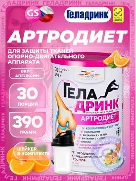 -20% 3 643 q 4 554 q 4 554 q 000 Комплекс хондропротекторов Артродиет (Geladrink Artrodiet) 390 г, Апельсин ГЕЛАДРИНК В корзину Артикул 2949