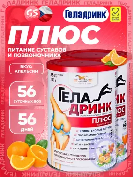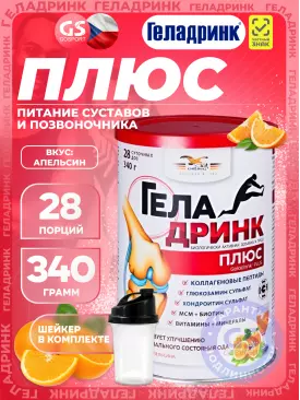 Комплекс хондропротекторов Плюс (Geladrink Plus) + Шейкер 340 г + шейкер, Апельсин ГЕЛАДРИНК Подписка на товар Артикул 55157