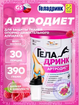 Комплекс хондропротекторов Артродиет (Geladrink Artrodiet) + Шейкер 390 г + шейкер, Малина ГЕЛАДРИНК Подписка на товар Артикул 55156