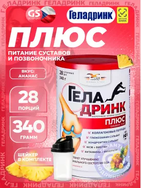 Комплекс хондропротекторов Плюс (Geladrink Plus) + Шейкер 340 г + шейкер, Ананас ГЕЛАДРИНК Подписка на товар Артикул 55158